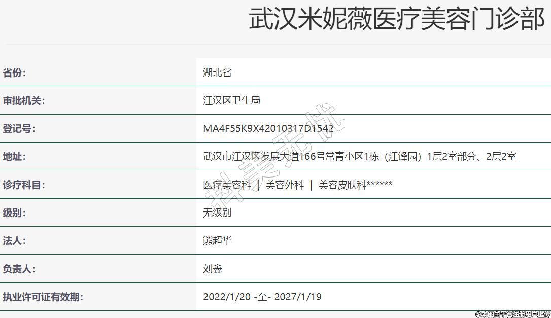 武漢米妮薇醫(yī)療美容2021-11-29成立,地址:武漢市江漢區(qū)發(fā)展大道166號常青小區(qū)1棟(江鋒園)1層2室部分、2層2室,診療科目:醫(yī)療美容科 | 美容外科 | 美容皮膚科******