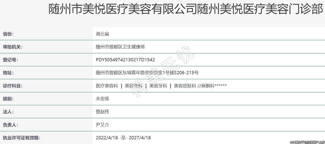 隨州市美悅醫(yī)療美容有限公司隨州美悅醫(yī)療美容門診部