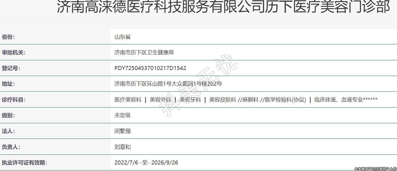 濟(jì)南高淶德醫(yī)療科技服務(wù)有限公司歷下醫(yī)療美容門診部