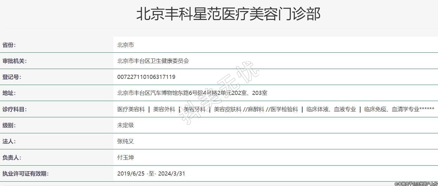 北京豐科星范醫(yī)療美容2017-01-16成立,地址:北京市豐臺區(qū)汽車博物館東路6號院4號樓2單元202室、203室,診療科目:醫(yī)療美容科 | 美容外科 | 美容牙科 | 美容皮膚科 //麻醉科 //醫(yī)學檢驗科 | 臨床體液、血液專業(yè) | 臨床免疫、血清學專業(yè)******