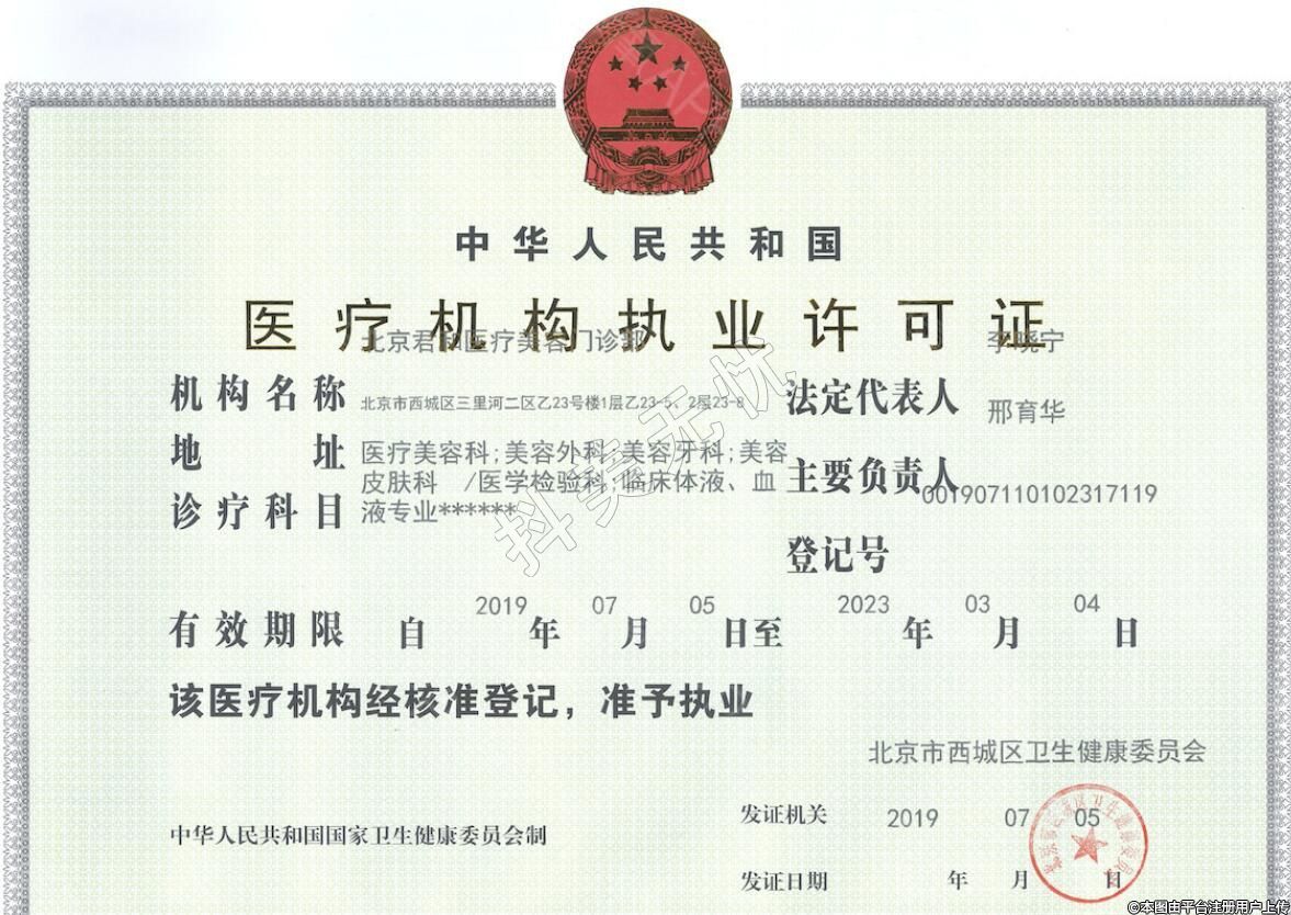 發(fā)證機關(guān):北京市西城區(qū)衛(wèi)生健康委員會