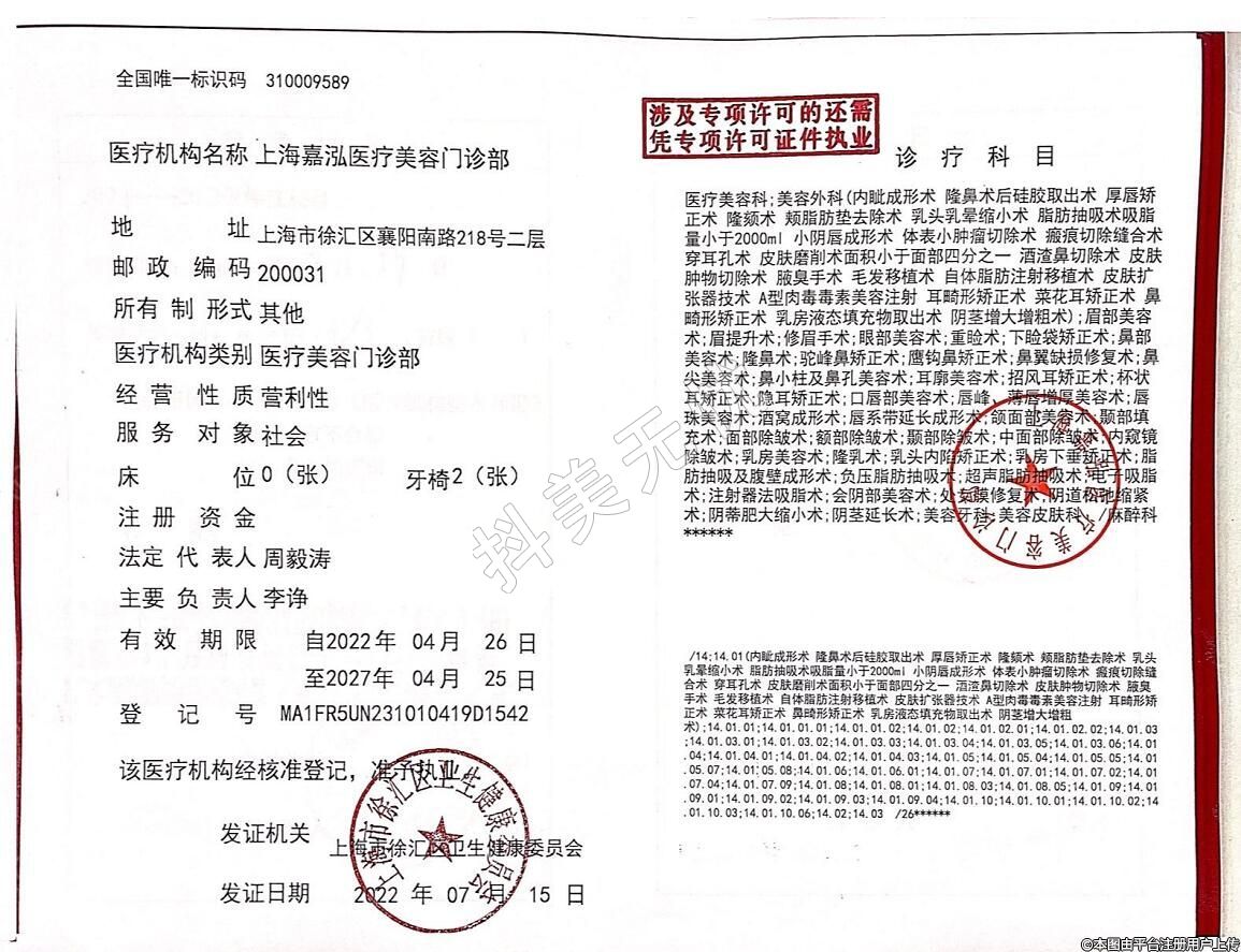 醫(yī)療機(jī)構(gòu)名稱:上海嘉泓醫(yī)療美容門診部