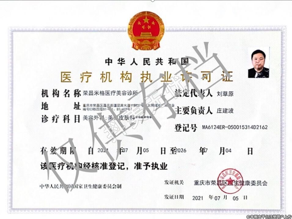 發(fā)證機關:重慶市榮昌區(qū)衛(wèi)生健康委員會