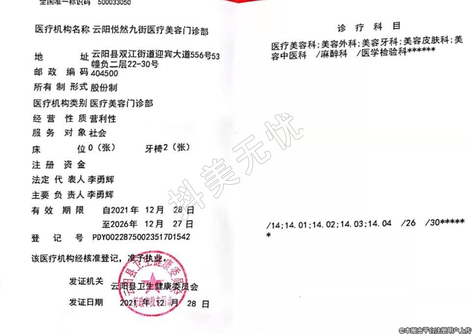 醫(yī)療機構(gòu)名稱:云陽悅?cè)痪沤轴t(yī)療美容門診部