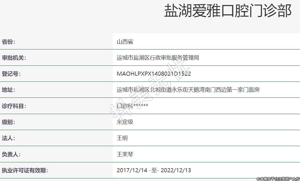 運城愛雅口腔2017年08月09日成立,地址:運城市鹽湖區(qū)北城街道永樂街天鵝灣南門西邊第一家門面房,診療科目:口腔科******