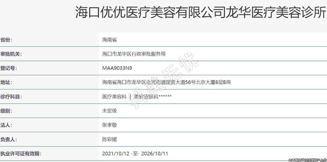 海口優(yōu)優(yōu)醫(yī)療美容有限公司龍華醫(yī)療美容診所