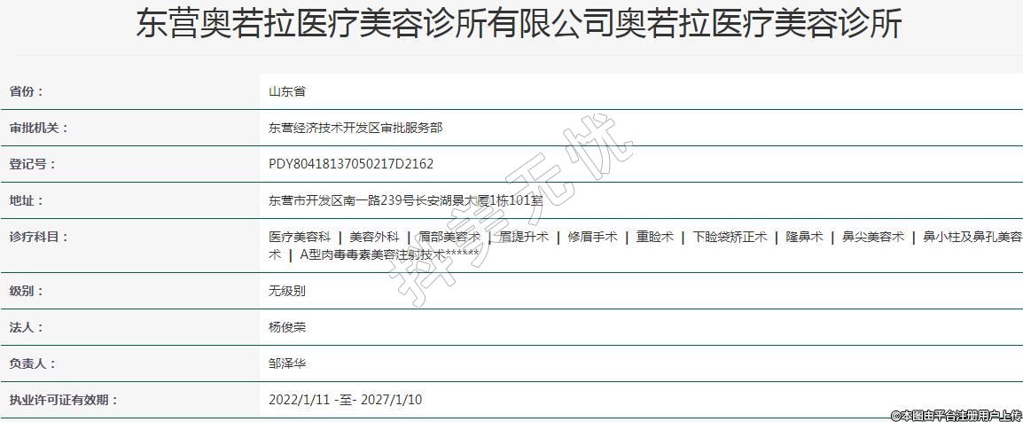 東營奧若拉醫(yī)療美容診所有限公司奧若拉醫(yī)療美容診所