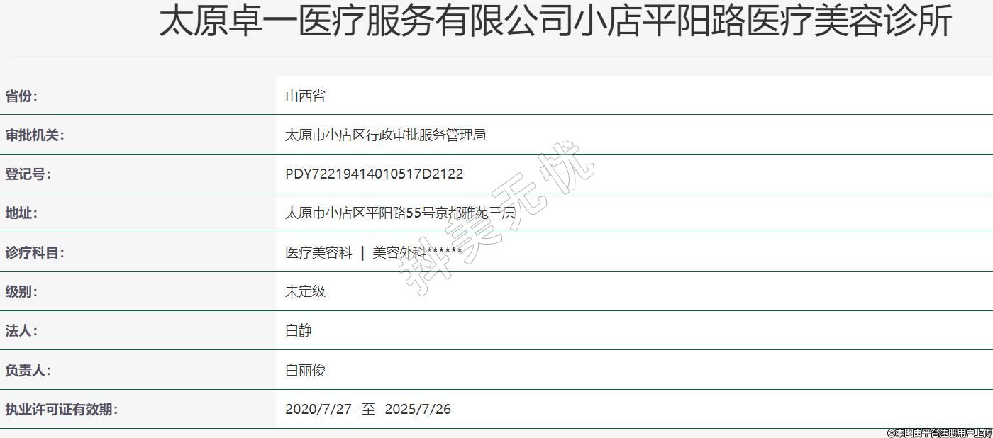 太原卓一醫(yī)療服務(wù)有限公司小店平陽(yáng)路醫(yī)療美容診所