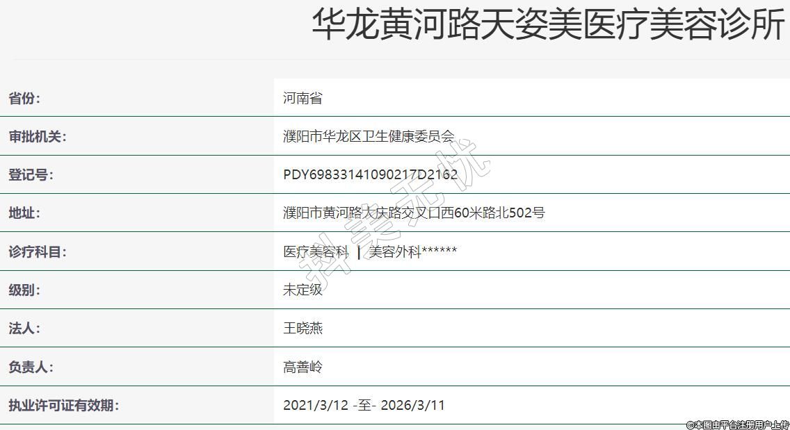 濮陽天姿美醫(yī)療美容2019-01-17成立,地址:濮陽市黃河路大慶路交叉口西60米路北502號(hào),診療科目:醫(yī)療美容科 | 美容外科******