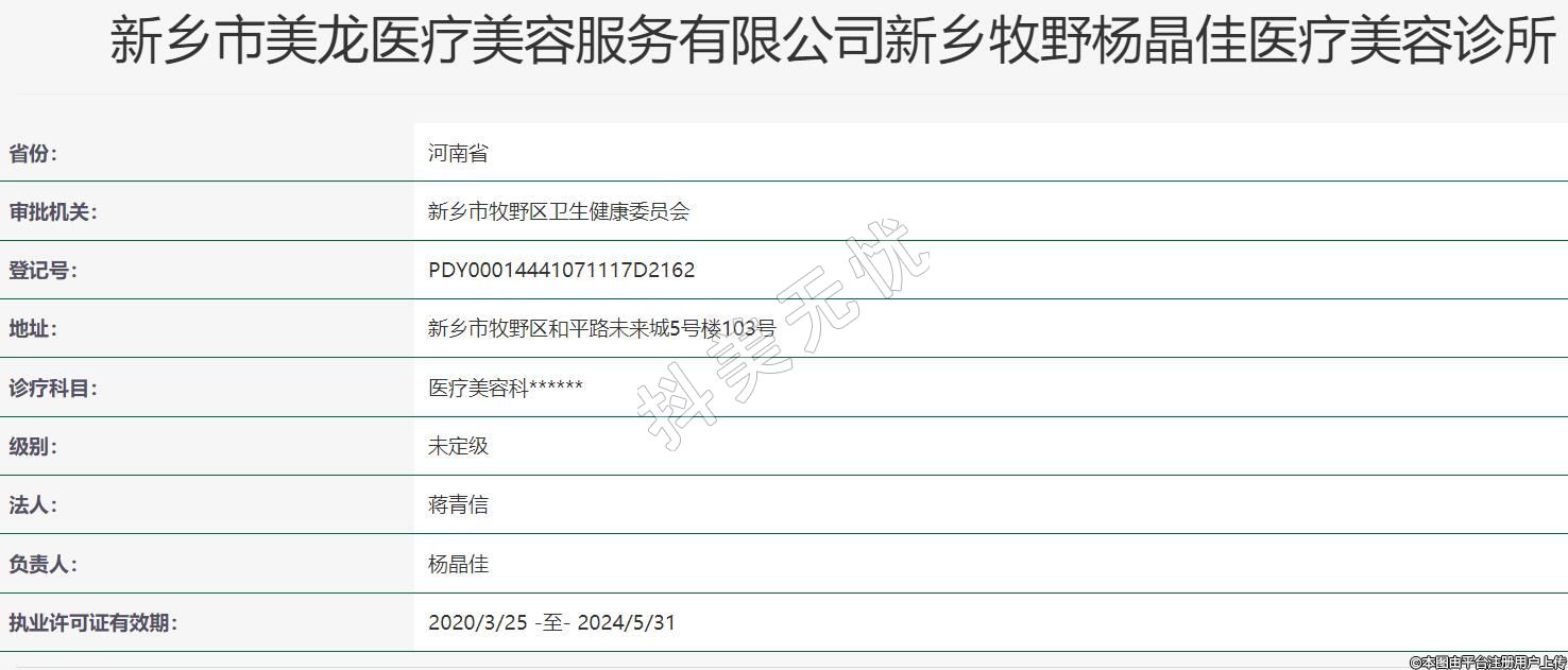 新鄉(xiāng)市美龍醫(yī)療美容服務(wù)有限公司新鄉(xiāng)牧野楊晶佳醫(yī)療美容診所
