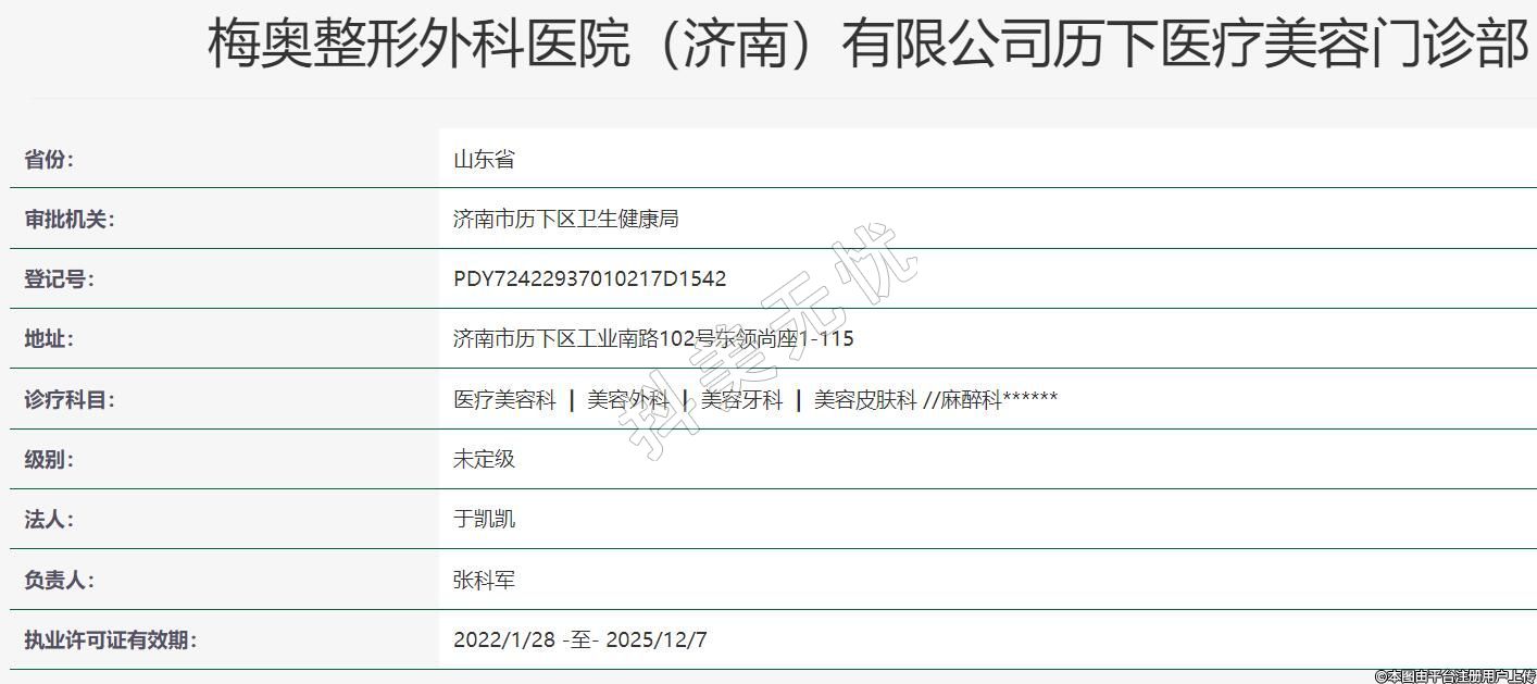 梅奧整形外科醫(yī)院(濟(jì)南)有限公司歷下醫(yī)療美容門診部