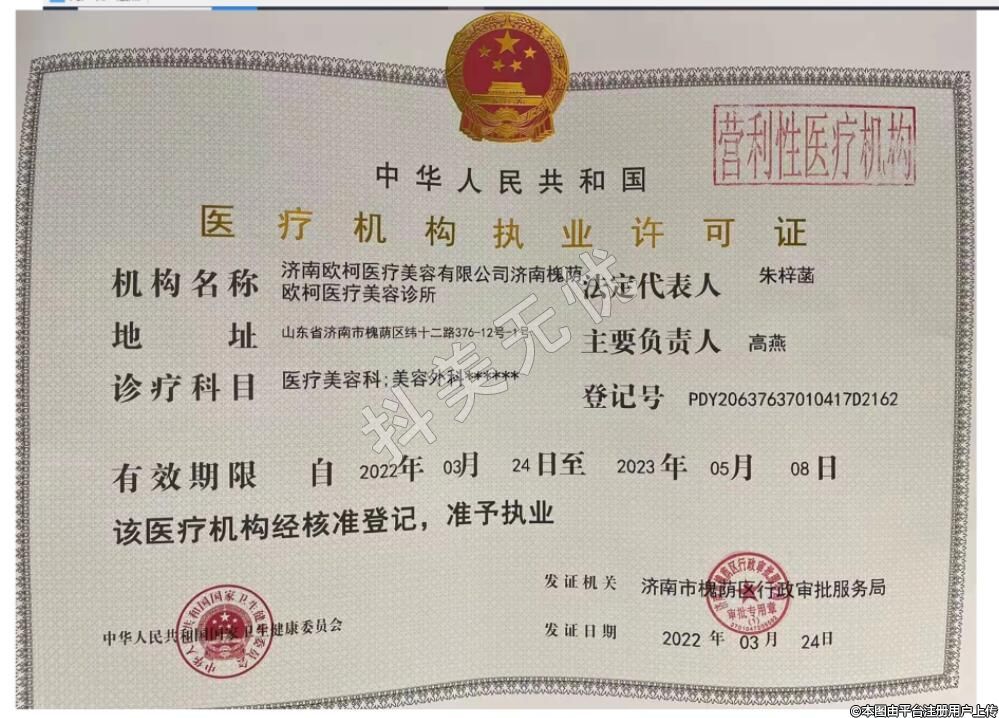 機構(gòu)名稱:濟南歐柯醫(yī)療美容有限公司濟南槐蔭歐柯醫(yī)療美容診所
