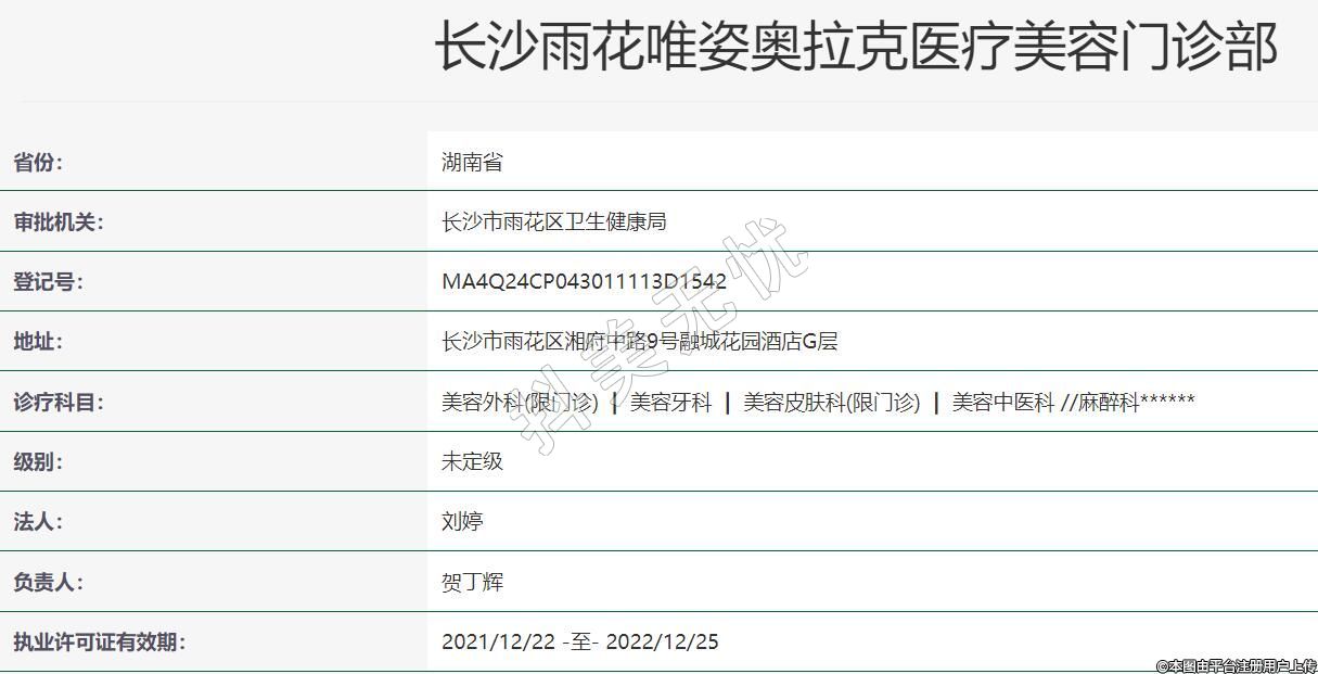 長沙雨花唯姿奧拉克醫(yī)療美容門診部