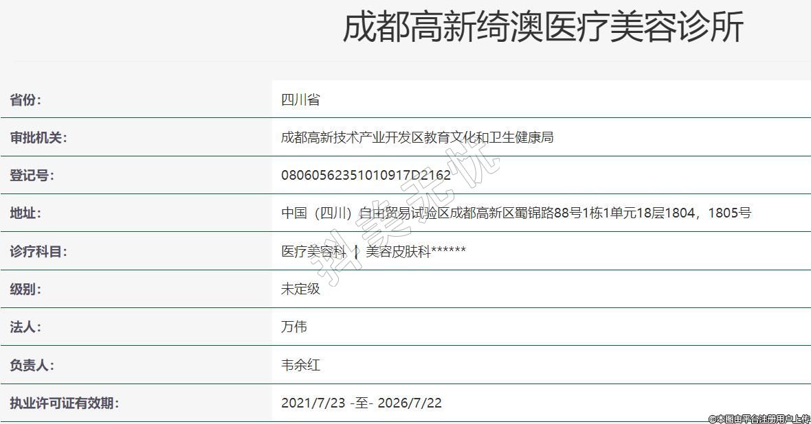 成都綺澳醫(yī)療美容診所創(chuàng)立于2013年,統(tǒng)一社會信用代碼:915101070806056235,位于成都市高新區(qū)蜀錦路88號1棟1單元18層1804、1805號。一個致力于專業(yè)塑美的醫(yī)療美容機構(gòu),始終以“不懈進(jìn)取、真誠關(guān)愛、追求不錯”的理念,堅持為廣大愛美人士提供非常好的醫(yī)療美容服務(wù),深受大家的信任與親睞。