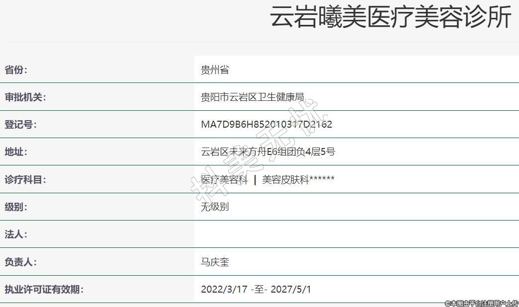 貴陽曦美醫(yī)療美容2021年11月19日成立,地址:云巖區(qū)未來方舟E6組團負4層5號,診療科目:醫(yī)療美容科 | 美容皮膚科******