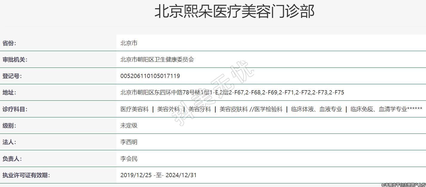 北京熙朵醫(yī)療美容2013-03-12成立,診療科目:醫(yī)療美容科 | 美容外科 | 美容牙科 | 美容皮膚科 //醫(yī)學(xué)檢驗科 | 臨床體液、血液專業(yè) | 臨床免疫、血清學(xué)專業(yè)******