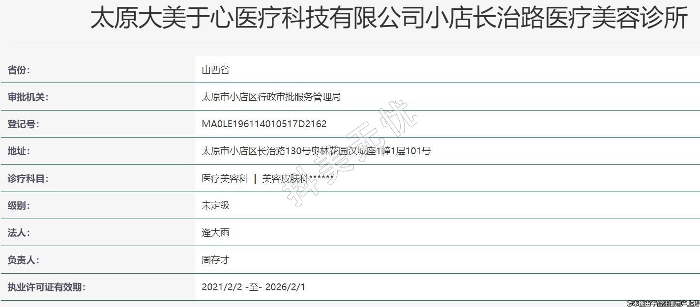 太原大美于心醫(yī)療科技有限公司小店長(zhǎng)治路醫(yī)療美容診所