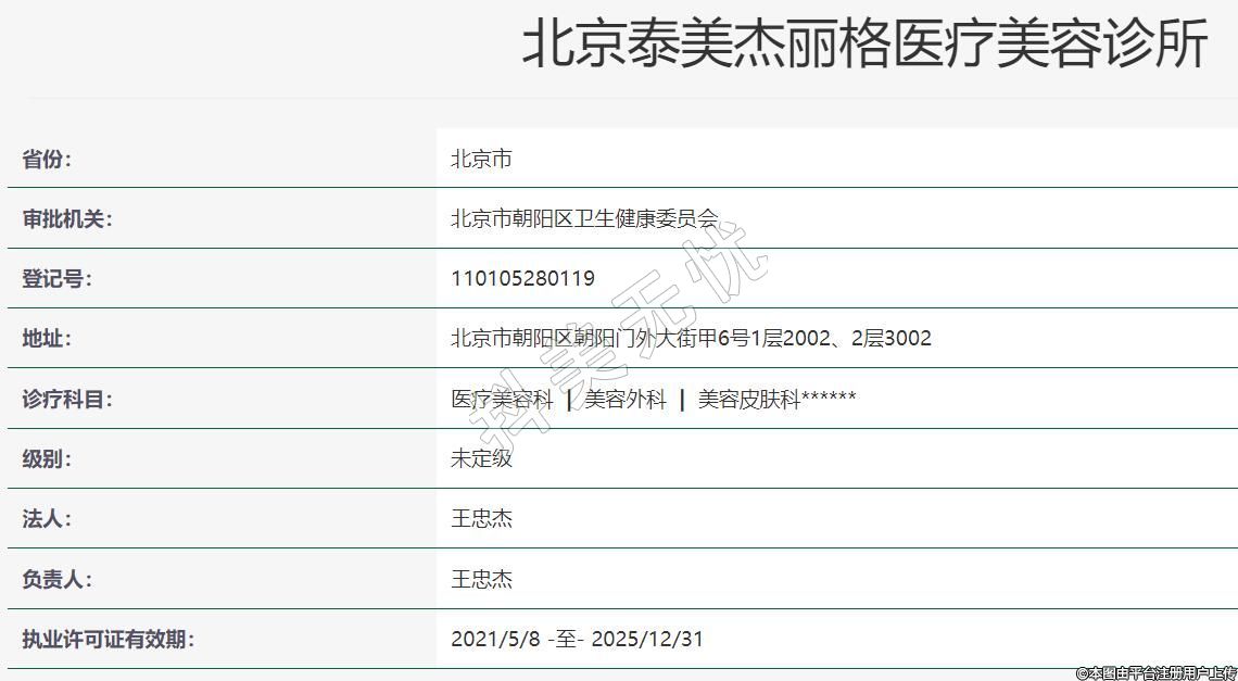 北京泰美杰麗格醫(yī)療美容2020-11-25成立,地址:北京市朝陽區(qū)朝陽門外大街甲6號1層2002、2層3002,診療科目:醫(yī)療美容科 | 美容外科 | 美容皮膚科******