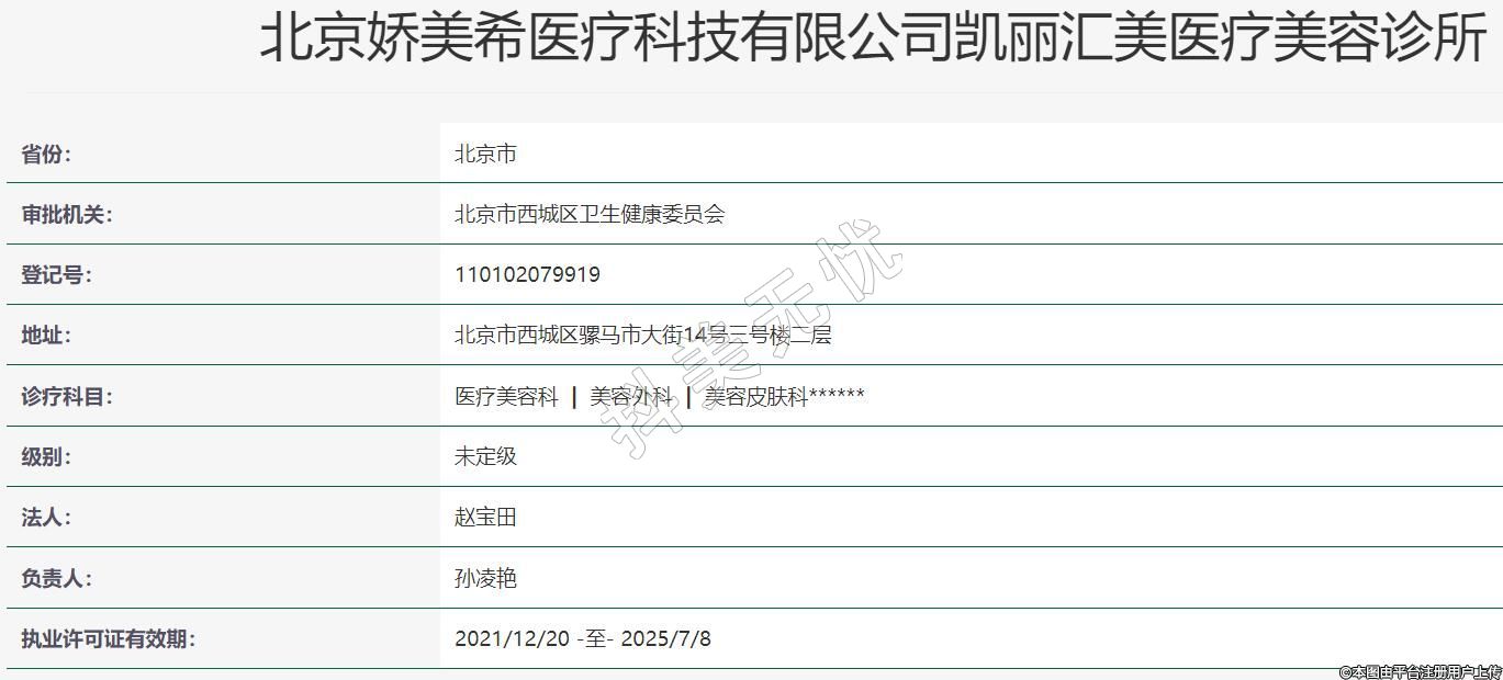北京嬌美希醫(yī)療科技有限公司凱麗匯美醫(yī)療美容診所