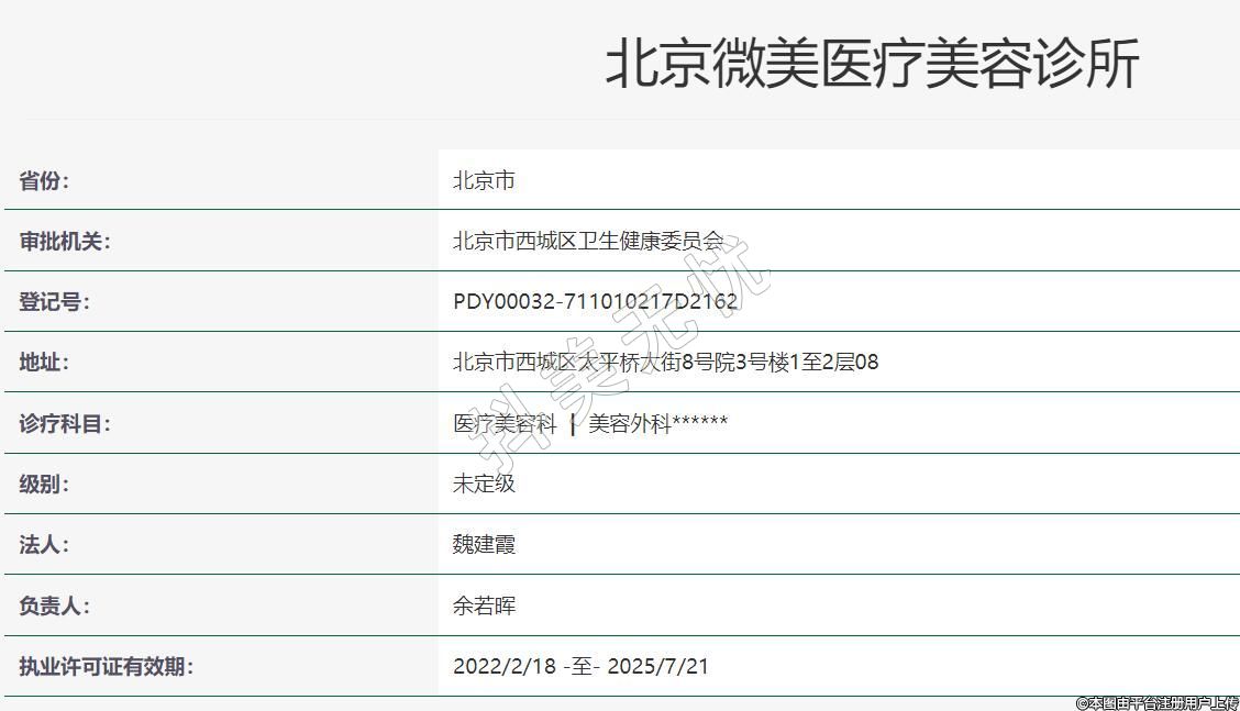 北京微美醫(yī)療美容2015-09-01成立,地址:北京市西城區(qū)太平橋大街8號(hào)院3號(hào)樓1至2層08,診療科目:醫(yī)療美容科 | 美容外科******