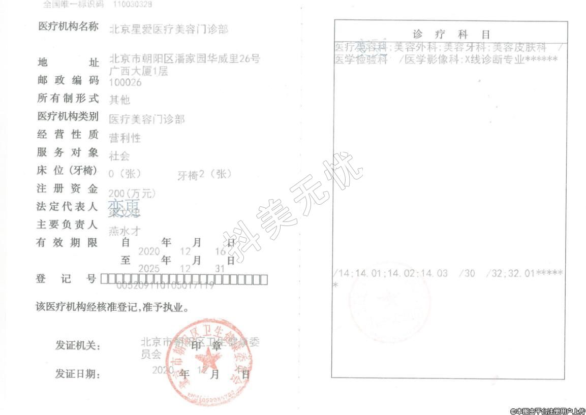 醫(yī)療機(jī)構(gòu)名稱:北京星愛醫(yī)療美容門診部