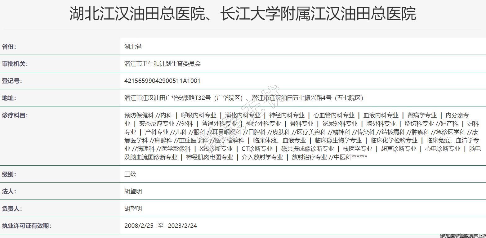 湖北江漢油田總醫(yī)院、長(zhǎng)江大學(xué)附屬江漢油田總醫(yī)院