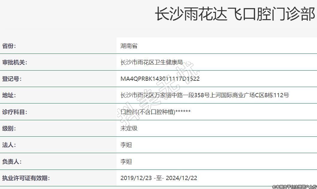 長(zhǎng)沙雨花達(dá)飛口腔門診部