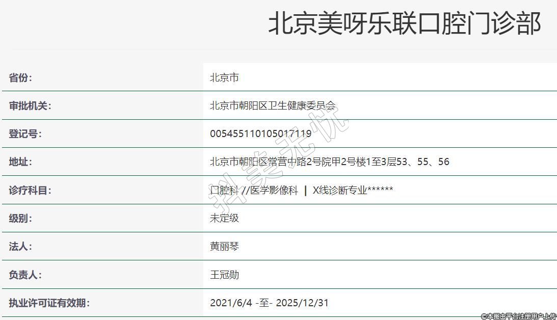 北京美呀樂聯(lián)口腔2020-12-28成立,地址:北京市朝陽區(qū)常營中路2號院甲2號樓1至3層53、55、56,診療科目:口腔科 //醫(yī)學影像科 | X線診斷專業(yè)******