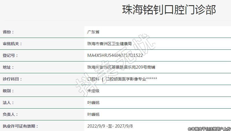 珠海銘釗口腔門診部成立于2017年9月22日,位于珠海市香洲區(qū)翠景路居樂苑209號商鋪。
