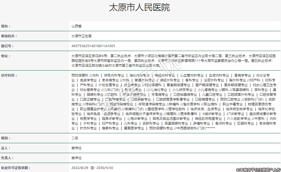 執(zhí)業(yè)許可證有效期:2022/8/29 -至- 2030/5/30