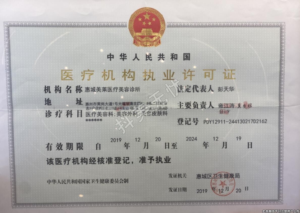 發(fā)證機關(guān):惠州市惠城區(qū)衛(wèi)生健康局