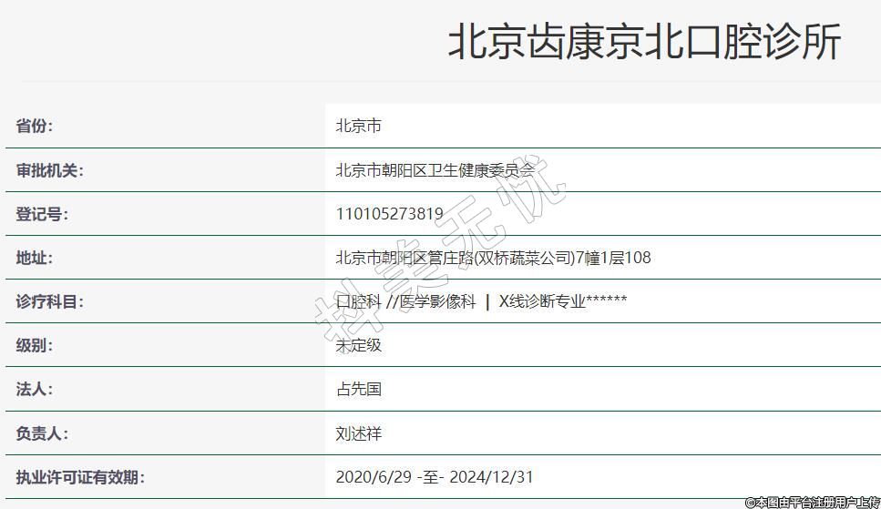北京齒康京北口腔2019-12-20成立,地址:北京市朝陽區(qū)管莊路(雙橋蔬菜公司)7幢1層108,診療科目:口腔科 //醫(yī)學影像科 | X線診斷專業(yè)******