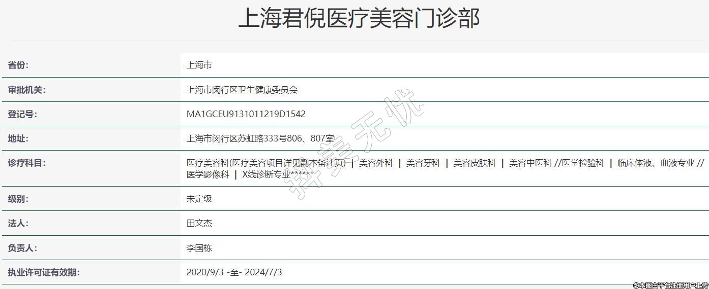 診療科目:醫(yī)療美容科(醫(yī)療美容項(xiàng)目詳見副本備注頁(yè)) | 美容外科 | 美容牙科 | 美容皮膚科 | 美容中醫(yī)科 //醫(yī)學(xué)檢驗(yàn)科 | 臨床體液、血液專業(yè) //醫(yī)學(xué)影像科 | X線診斷專業(yè)******