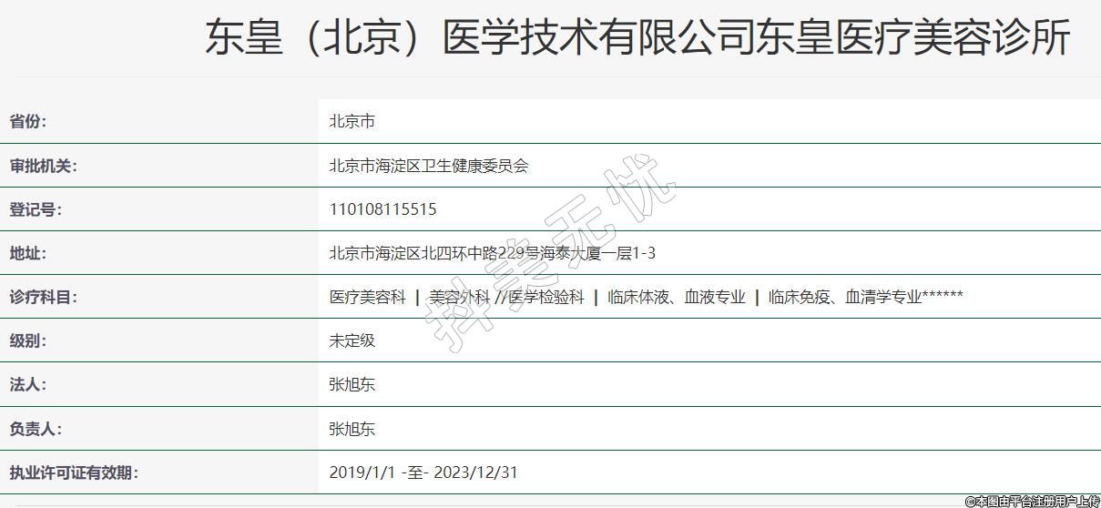東皇(北京)醫(yī)學(xué)技術(shù)有限公司東皇醫(yī)療美容診所