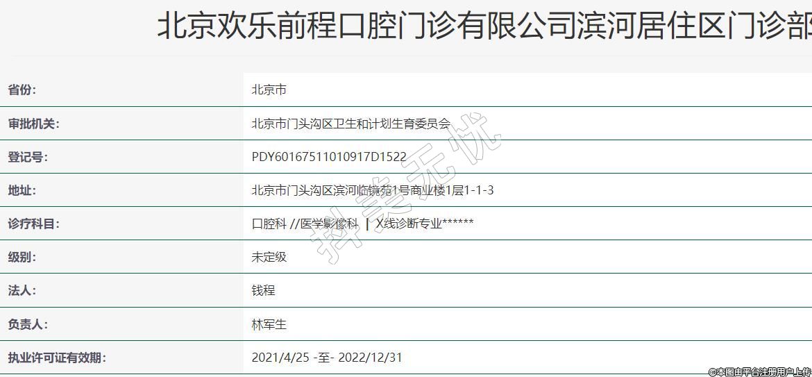 北京歡樂前程口腔門診有限公司濱河居住區(qū)門診部