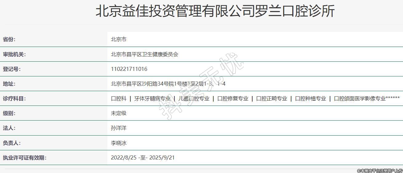北京益佳投資管理有限公司羅蘭口腔診所