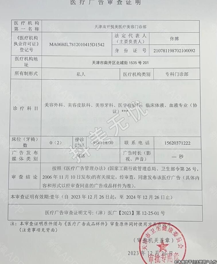 機(jī)構(gòu)名稱:天津南開悅美醫(yī)療美容門診部