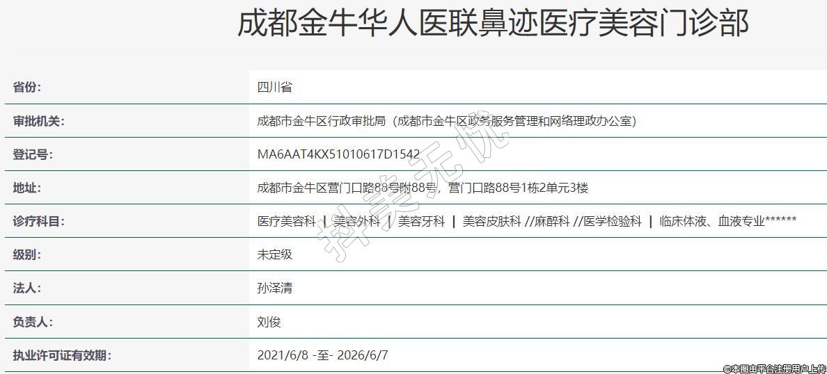 成都金牛華人醫(yī)聯(lián)鼻跡醫(yī)療美容門診部