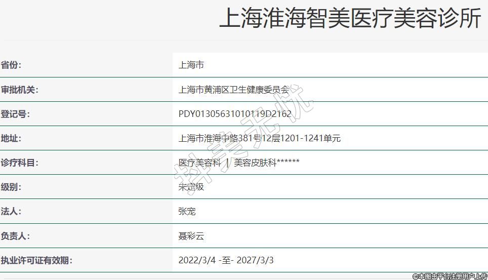 上?;春V敲泪t(yī)療美容2021-09-16成立,地址:上海市淮海中路381號(hào)12層1201-1241單元,診療科目:醫(yī)療美容科 | 美容皮膚科******