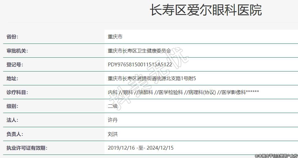 長壽區(qū)愛爾眼科2019-05-29成立,診療科目:內(nèi)科 //眼科 //麻醉科 //醫(yī)學檢驗科 //病理科(協(xié)議) //醫(yī)學影像科******