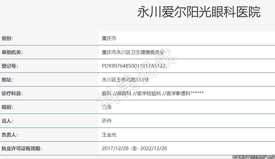 永川愛爾陽光眼科2016-05-17成立,地址:永川區(qū)玉屏北路333號,診療科目:眼科 //麻醉科 //醫(yī)學(xué)檢驗科 //醫(yī)學(xué)影像科******