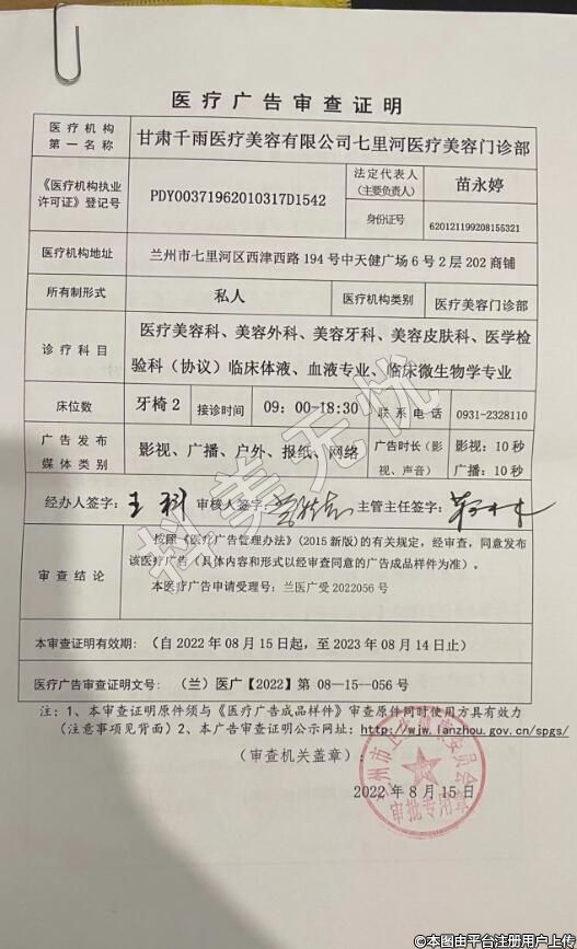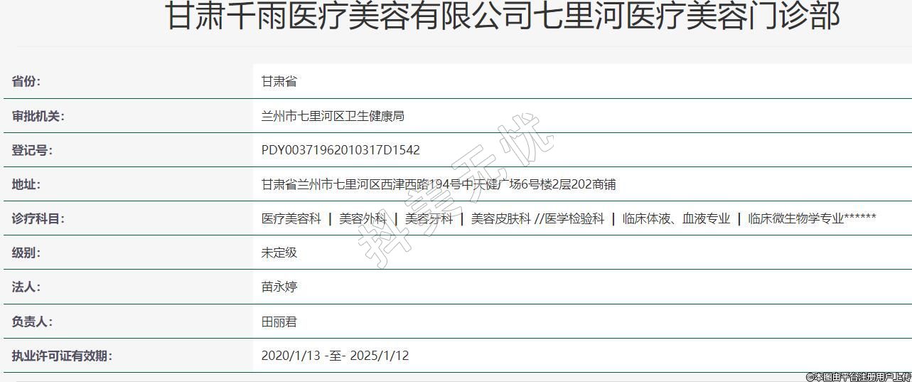 甘肅千雨醫(yī)療美容有限公司七里河醫(yī)療美容門(mén)診部