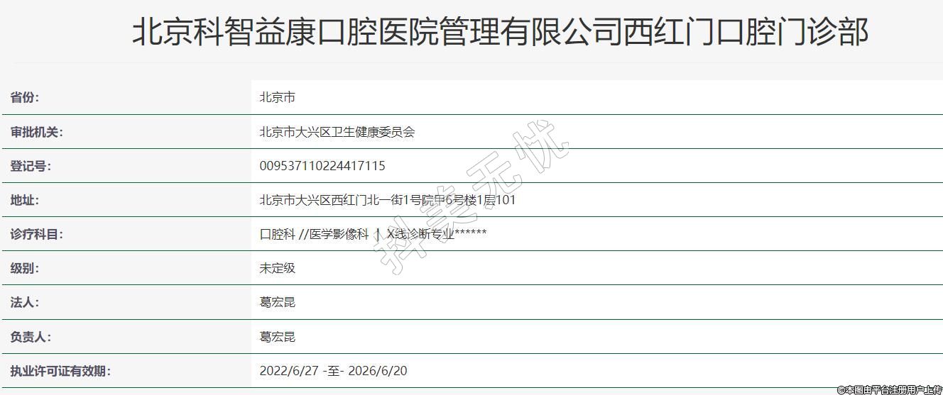 北京科智益康口腔醫(yī)院管理有限公司西紅門口腔門診部