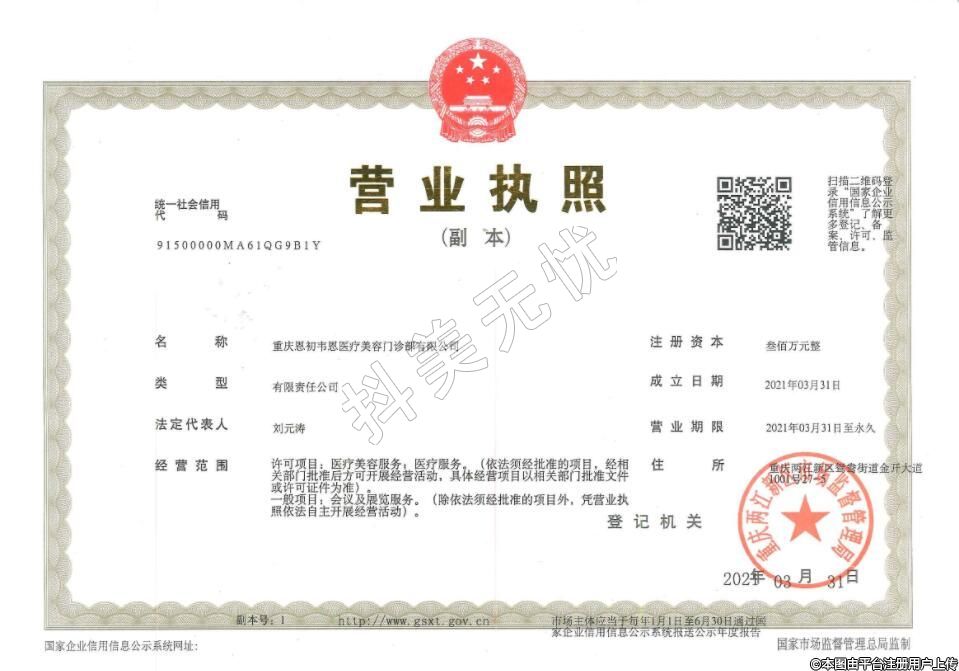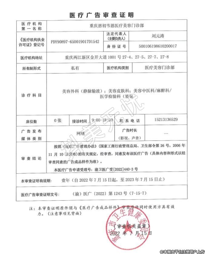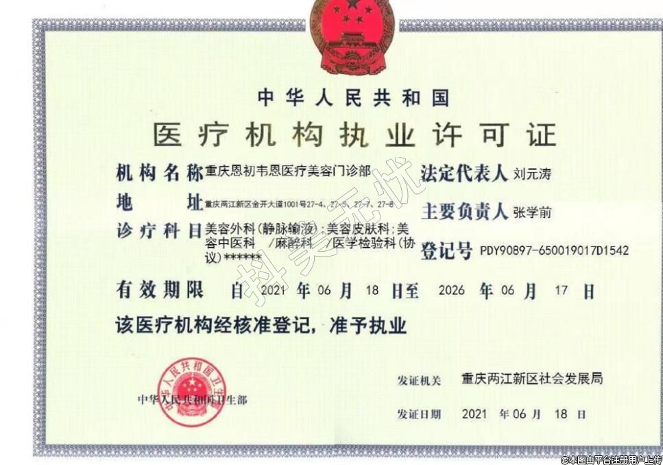 機構(gòu)名稱:重慶恩初韋恩醫(yī)療美容門診部