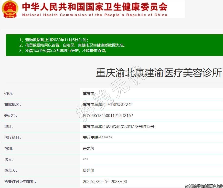 審批機關(guān):重慶市渝北區(qū)衛(wèi)生健康委員會