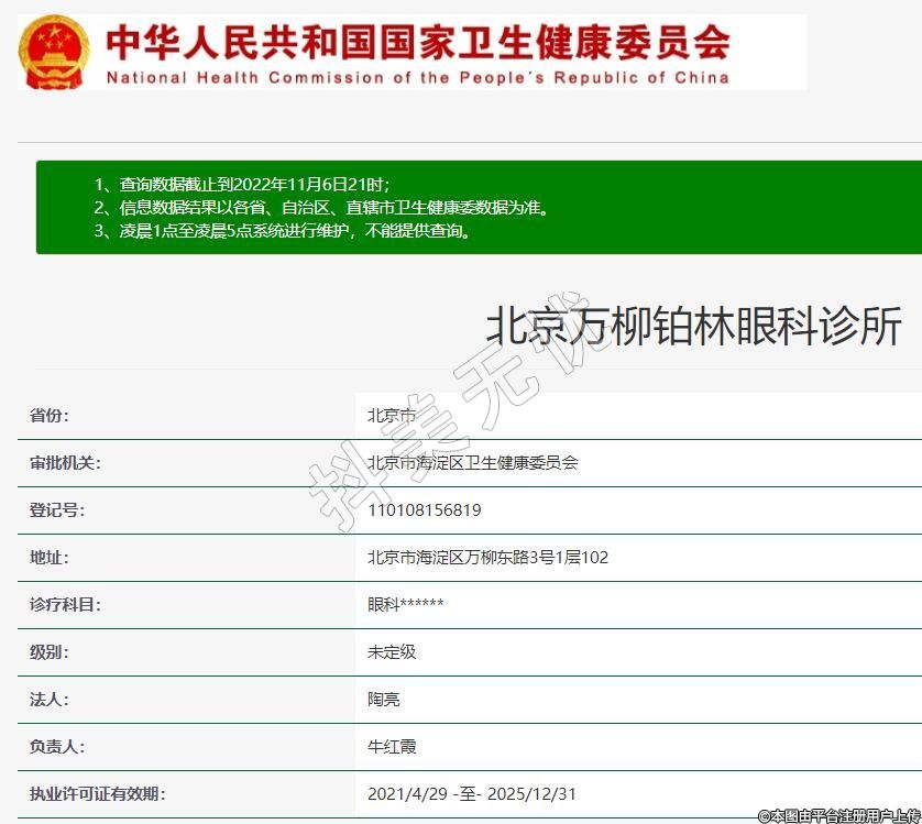 北京萬柳鉑林眼科2020-12-17成立,地址:北京市海淀區(qū)萬柳東路3號1層102,診療科目:眼科******