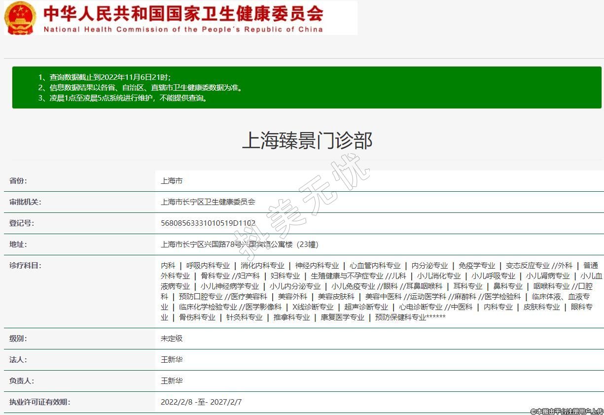 審批機關(guān):上海市長寧區(qū)衛(wèi)生健康委員會