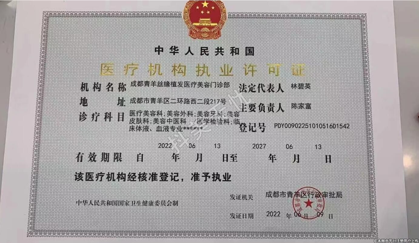 機(jī)構(gòu)名稱:成都青羊絲緣植發(fā)醫(yī)療美容門診部