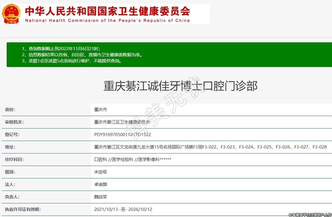 重慶綦江誠佳牙博士口腔2021-06-08成立,地址:重慶市綦江區(qū)文龍街道九龍大道15號名揚國際廣場第F3層F3-022、F3-023、F3-024、F3-025、F3-026、F3-027、F3-028,診療科目:口腔科 //醫(yī)學檢驗科 //醫(yī)學影像科******