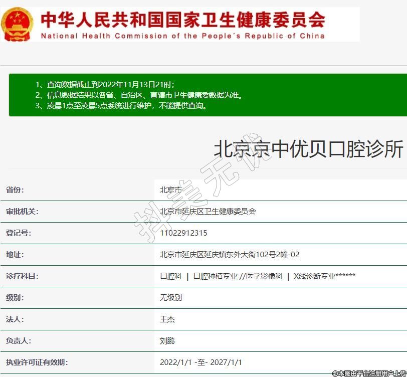 北京京中優(yōu)貝口腔2021-08-30成立,地址:北京市延慶區(qū)延慶鎮(zhèn)東外大街102號2幢-02,診療科目:口腔科 | 口腔種植專業(yè) //醫(yī)學影像科 | X線診斷專業(yè)******